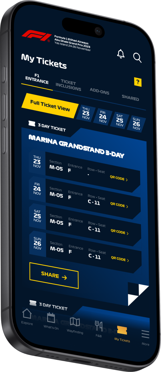 For the first time, every ticket, map, and update lived inside one app — making Yas Marina Circuit fully digital.